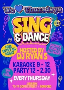 Romford’s biggest midweek party 🔥 Hosted by DJ Ryan S, bringing you karaoke, big singalongs & dancefloor energy all night 🎶 🎤 Karaoke: 9PM – 12AM 💃 Party: 12AM – 2:30AM ✨ Free entry all night 🥃 Drinks from £3 🙌 Expect throwbacks, guilty pleasures & pure vibes from start to finish